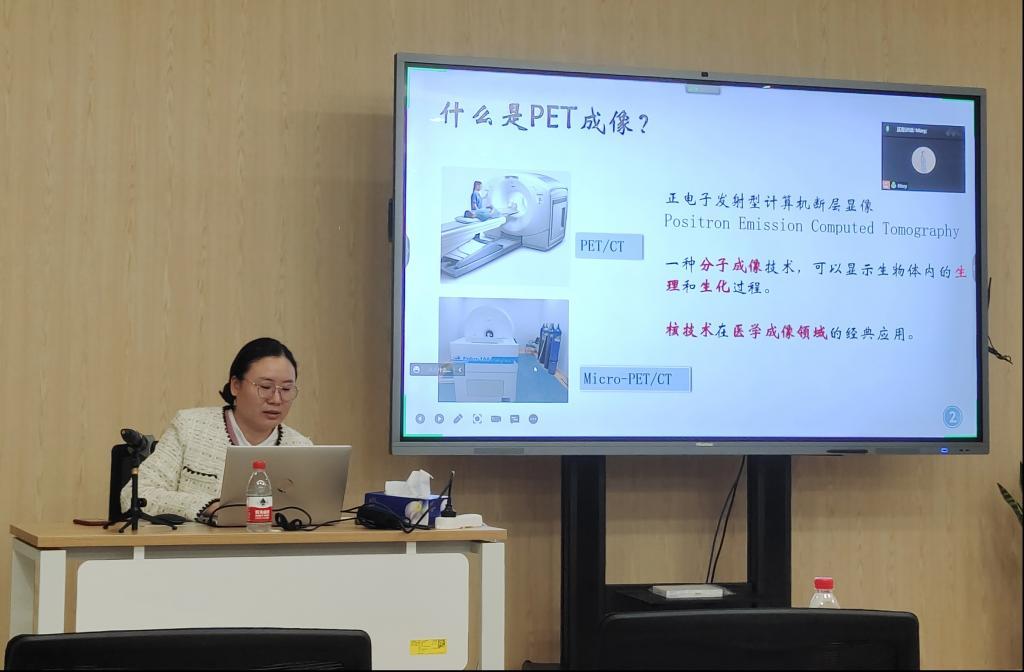 本次活動中,潘婷婷博士分享了PET成像與腦科學方面的先進技術。PET是正電子發(fā)射型計算機斷層成像技術,將放射性核素標記的葡萄糖注射到生物體內,對目標部位進行掃描,能快速靈敏地探索生物體內的生理和生化過程,在腦科學研究中應用該技術,可以實現非侵入性的探索大腦相關神經元功能。楊文博士介紹了二維超寬禁帶半導體的研究現狀與未來展望,二維半導體能以薄膜的形式組裝成新型的異質結器件,未來在光學成像、圖像傳感領域具有極大的應用潛力。都小康博士以粒子物理標準模型為例,介紹了原子核層面的粒子相互作用以及量子場論,講解了正反物質不對稱問題以及質子衰變問題等前沿理論問題。